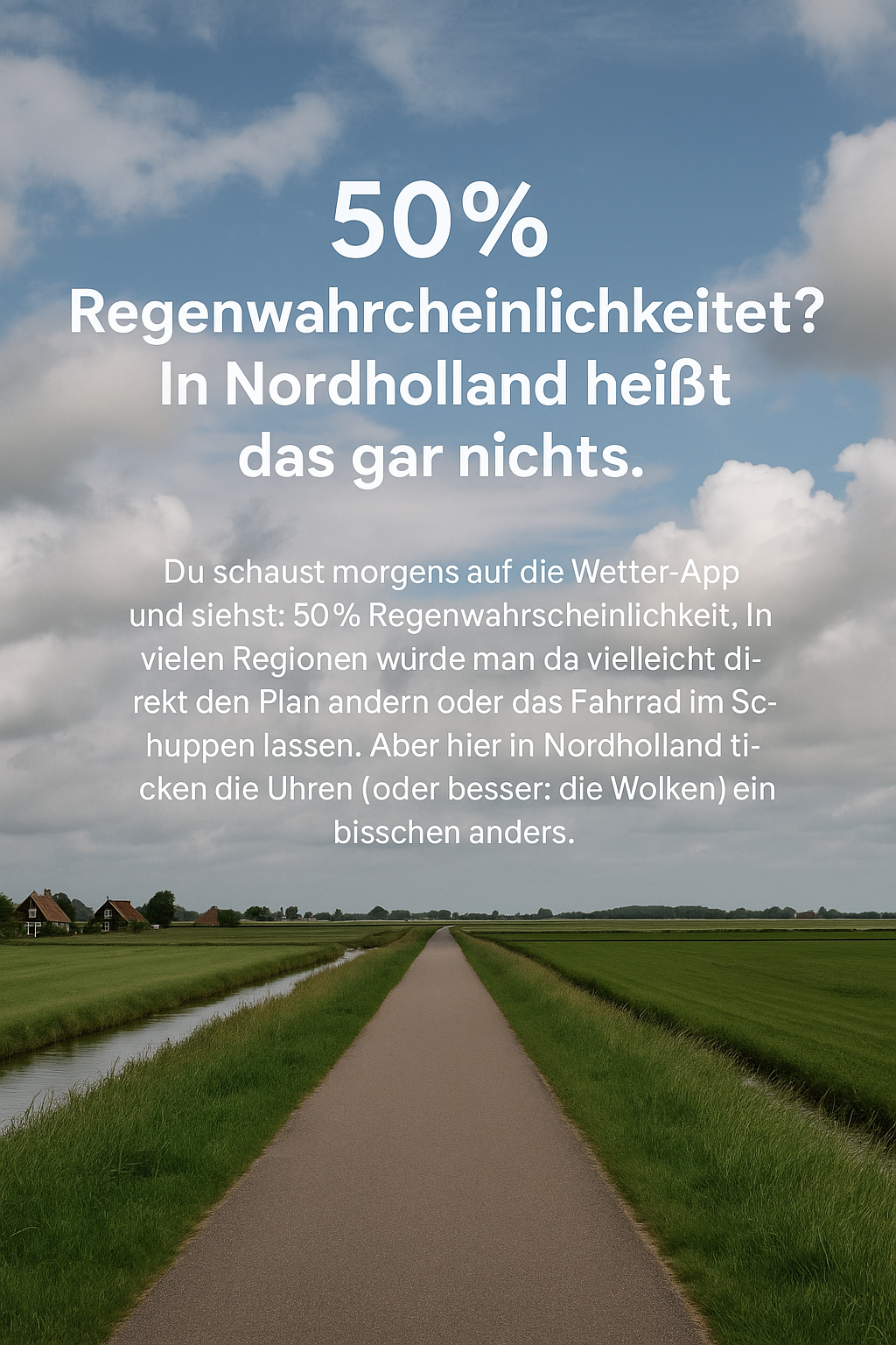 Du schaust morgens auf die Wetter-App und siehst: 50 % Regenwahrscheinlichkeit. In vielen Regionen würde man da vielleicht direkt den Plan ändern oder das Fahrrad im Schuppen lassen. Aber hier in Nordholland ticken die Uhren (oder besser: die Wolken) ein bisschen anders.