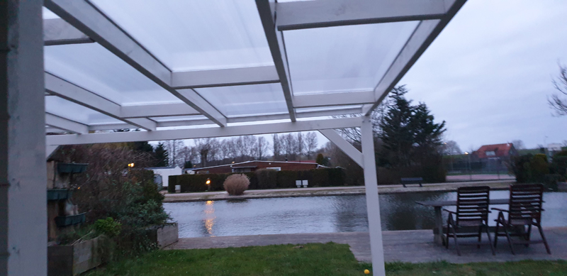 Direkt am Wasser finden Sie nun eine gemütliche und windgeschützte Ecke. Dank dem Glasdach, das UV-Strahlen aussperrt, aber die Sonne hinein lässt, ist es schön hell ? perfekt zum Angeln, Relaxen und für eine kulinarische Auszeit mit Kaffee und Kuchen. Natürlich lässt es sich hier auch mit einem kühlen Biertje sehr gut aushalten 😉 ?